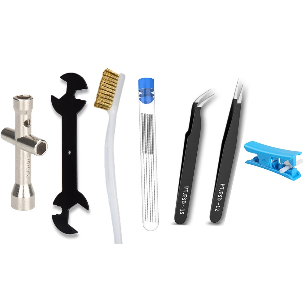 | 19. 7 in 1 3Dプリンターノズル,クリーニングツールセット,ピンセット,レンチ,スペインのスパイク,3Dプリンター部品用のpfeカッター Product Id: 1005003187052924 Category: Computer & Office 3d印刷 Price start from: 20.00 USD