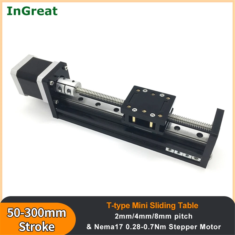 - スライディングテーブルT型,ストローク50-300mm,3Dプリンター部品,ミニリニアレール,ステッピングモーター,neam17モーター付きリニアアクチュエータ