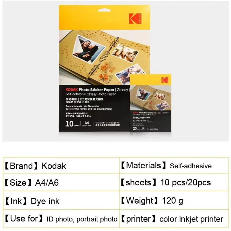 - Kodak-粘着性の写真用紙,20/10枚,インクジェット用紙,光沢のある,文字サイズ,速乾性,耐水性